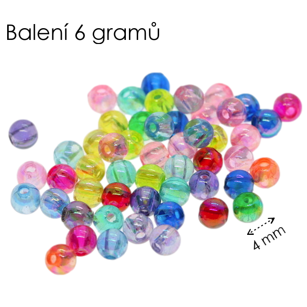 AB kuličky 4mm, plast (6g=cca220ks)skladem 31 balení10 Kč/ balení
