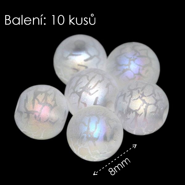Bílé kuličky, matné AB, 8mm (10ks)skladem 18 balení18 Kč/ balení