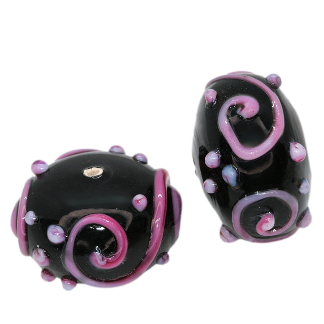 Černý disk s růžovou spirálkou, 26x16mmvyprodáno15 Kč/ ks