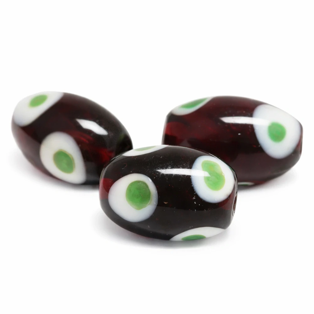 Fialový oválek se zelenými puntíky, 19x13mmskladem 60 ks6 Kč/ ks