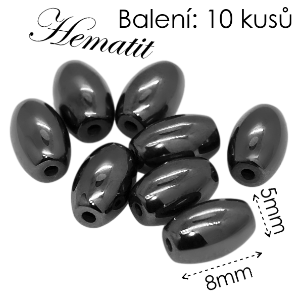 HEMATIT, oválek, 8x5mm (10ks)skladem 3 balení9 Kč/ balení