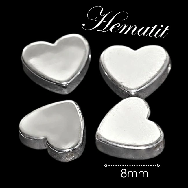 Korálky pokovené, ve tvaru srdíčka, barvě stříbra, ze syntetického HEMATITU, uzemňujícího, ochranného kamene, který pomáhá nastolit rovnováhu těla, mysle a ducha. Odstraňuje a zabraňuje negativní energii a rušivým vlivům vstoupit do aury a proto navozuje jeho nositeli klid, mír a harmonii.