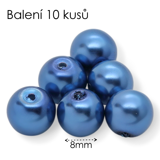 - Modré kuličky, voskované, 8mm (10ks)