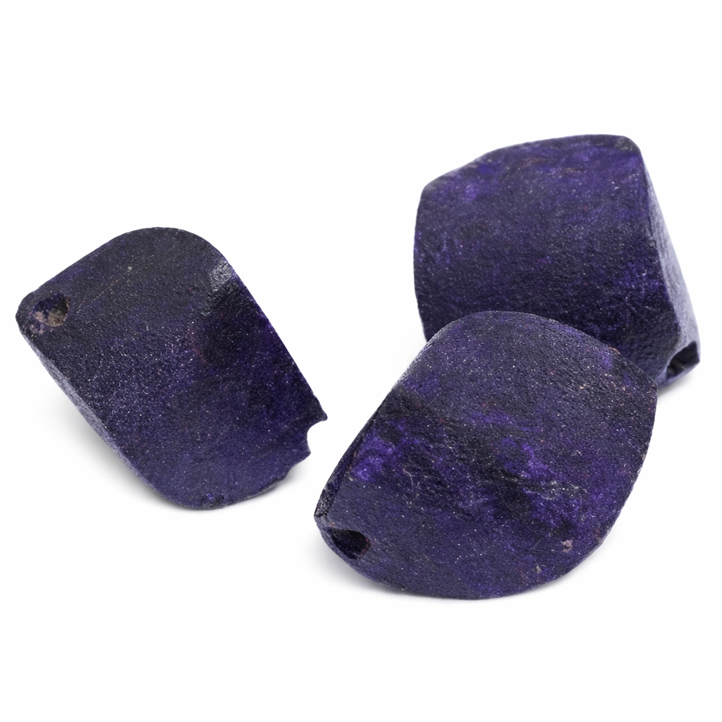 Dřevěný korálek se třemi hranami, stočený. Modrofialové barvy.