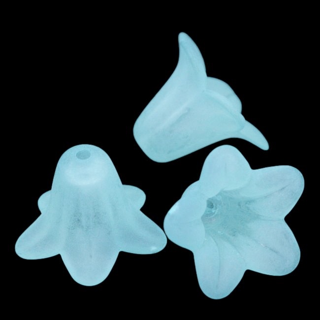 Plastový matný květ ve tvaru zvonečku v jemném modrém odstínu je skvělým dekoračním a korálkovým prvkem pro jarní tvoření, romantické šperky i sezónní dekorace.