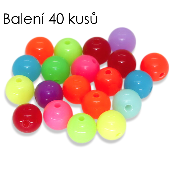 Neonové kuličky 8mm, plast (40ks)skladem 7 balení12 Kč/ balení