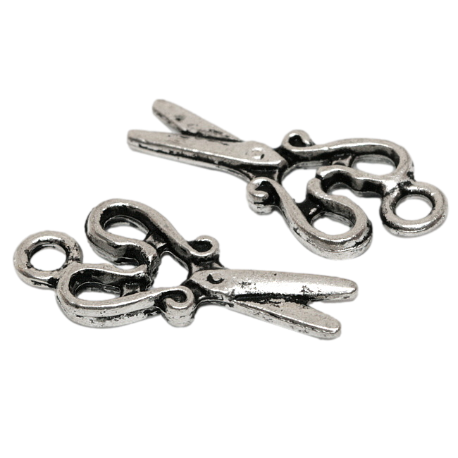 Starostříbrný přívěsek ve tvaru nůžek.