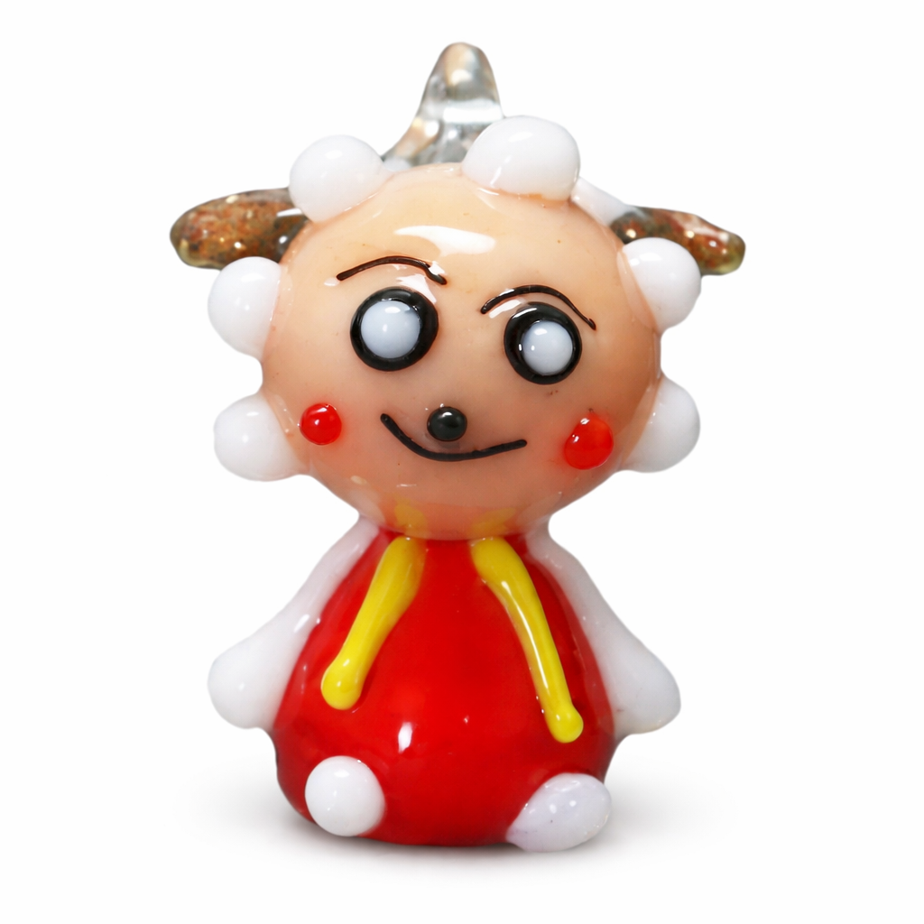 Ovečka s červeným tělíčkem. Skleněný přívěšek s průhledným očkem.