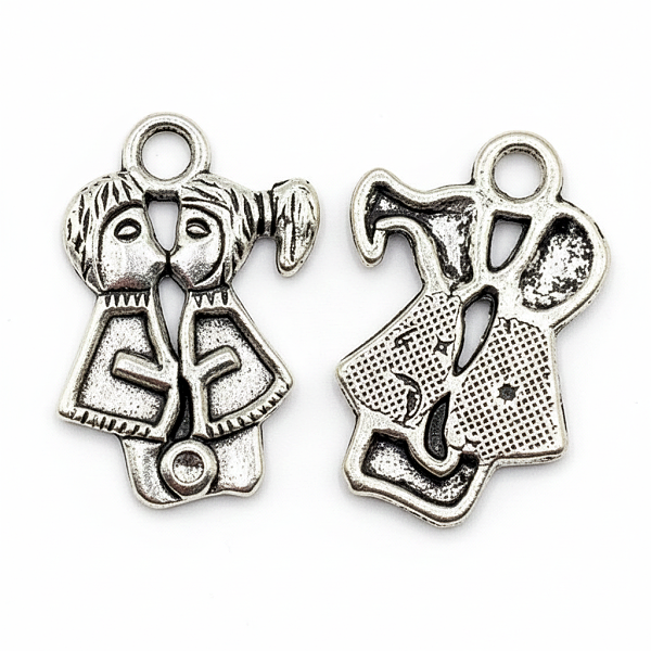 Kovová, líbající se dvojice v barvě starostříbra. Do důlku mezi dvojicí je možné vložit kamínek. Jednostranný přívěšek.