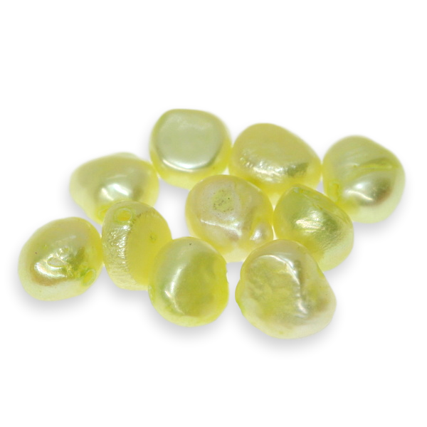 Nepravidelné, žlutě dobarvované, sladkovodní, říční perličky.