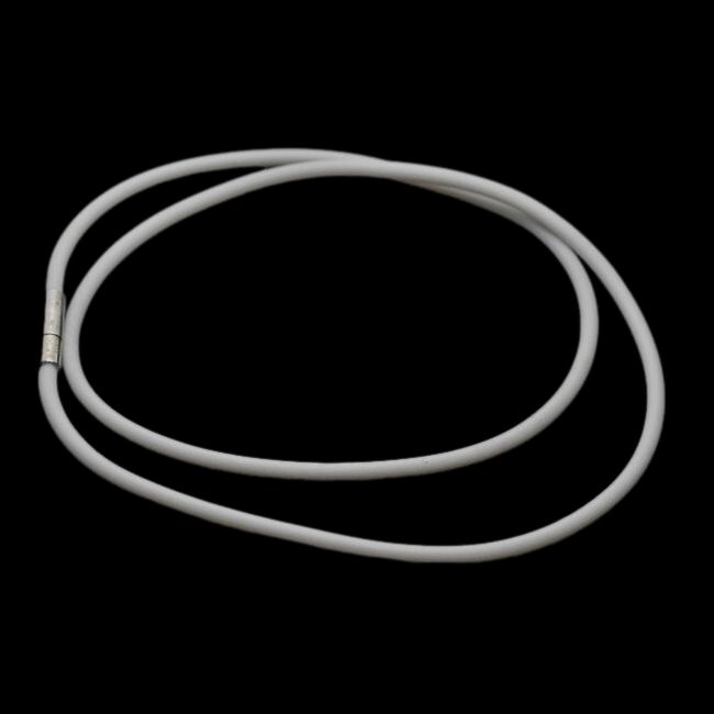 Náhrdelníková, gumová, šedá šňůrka se zacvakávacím, mosazným zapínáním.