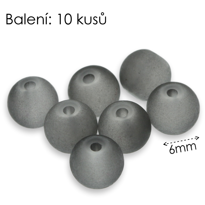 Šedé kuličky, matné, 6mm (10ks)skladem 190 balení5 Kč/ balení