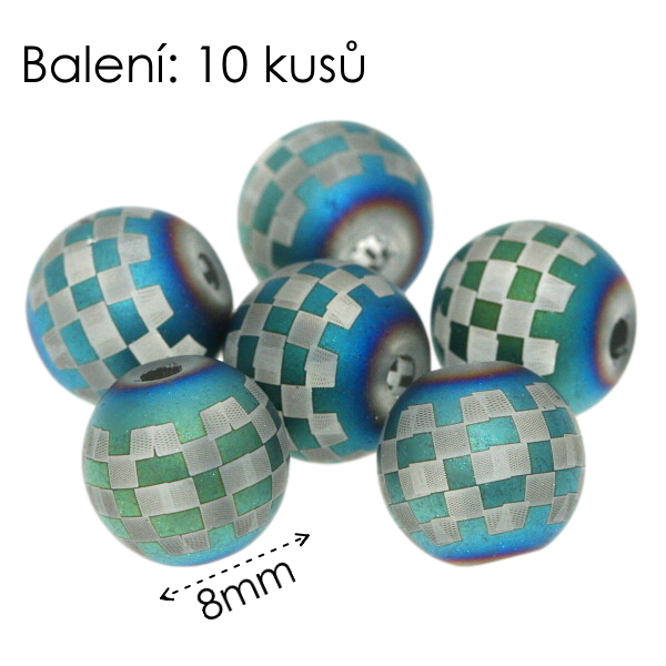 Šedé kuličky, matné s šachovnicí, 8mm (10ks)