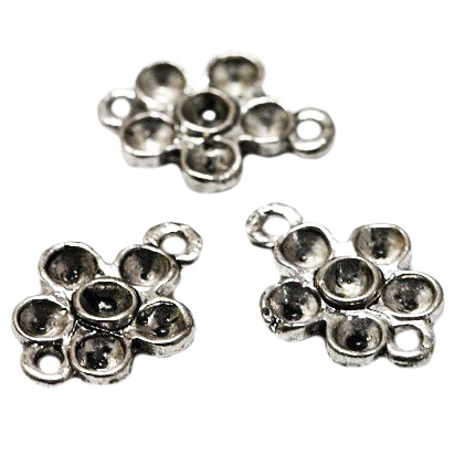 Kovový starostříbrný květ s důlky, které jsou vhodné pro osazení kamínky.