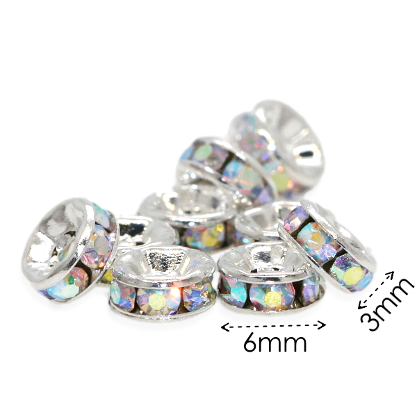 Stříbrná rondelka, AB, 6x3mm