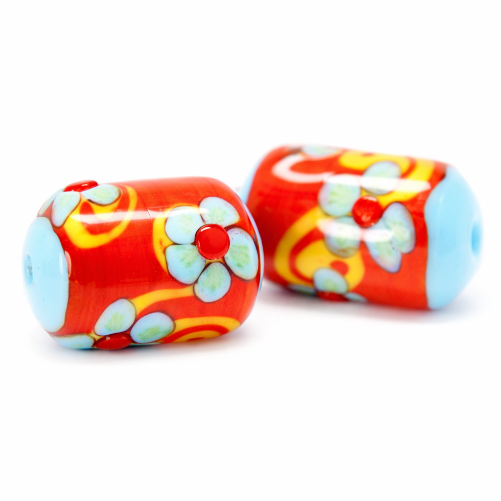 Váleček červený s květy, 21x14mmskladem 114 Kč