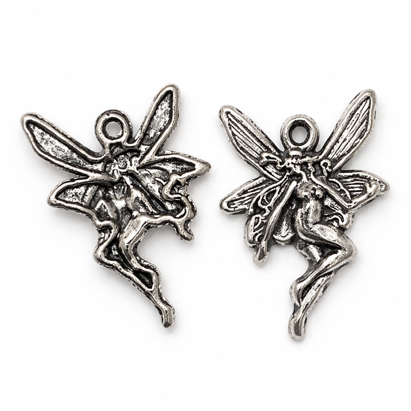 Kovová víla (elfka) v barvě starostříbra. Jednostranný přívěšek.