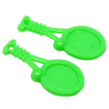 Plastová, zelená tenisová raketa s míčkem. Na povrchu se mohou objevit drobné vady. Z obou stran je stejná.
