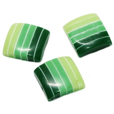 Akrylový, pruhovaný, zelený kabošon. Na povrchu se mohou objevit drobné vady - škrábanečky,