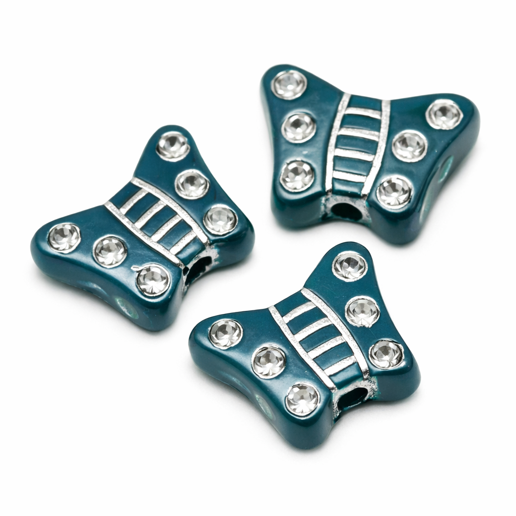 Zelený motýlek, stříbrné zdobení, 10x8mmskladem 158 ks1 Kč/ ks