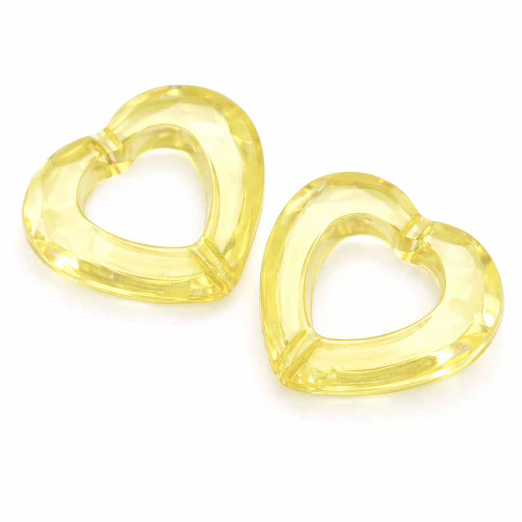 Plastové, žluté srdíčko s jakoby broušenýma ploškama. Velmi pěkné, transparentní.