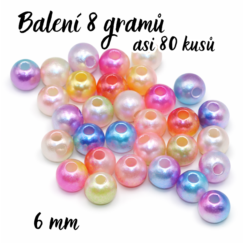 Lesklé akrylové imitace perel v pestrém barevném mixu s jemným duhovým efektem ✨ Každá perlička má krásný perleťový lesk, který šperkům dodá hravost i lehký nádech elegance.