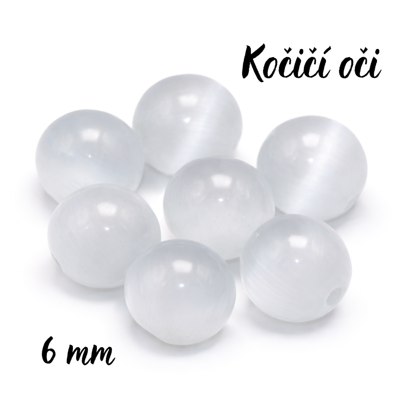 Bílá kulička, kočičí oči, 6mmskladem 55 ks2,30 Kč/ ks