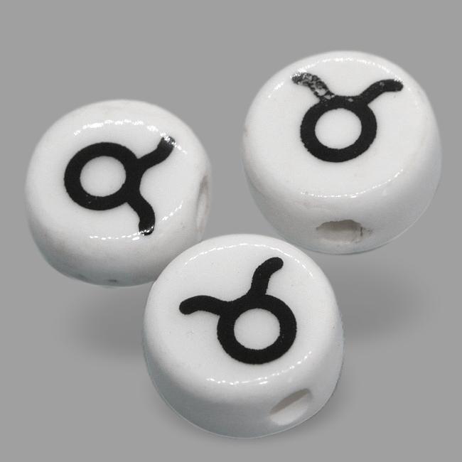 Porcelánové, bílé kolečko se znakem znamení zvěrokruhu - BÝK (znak je z obou stran)