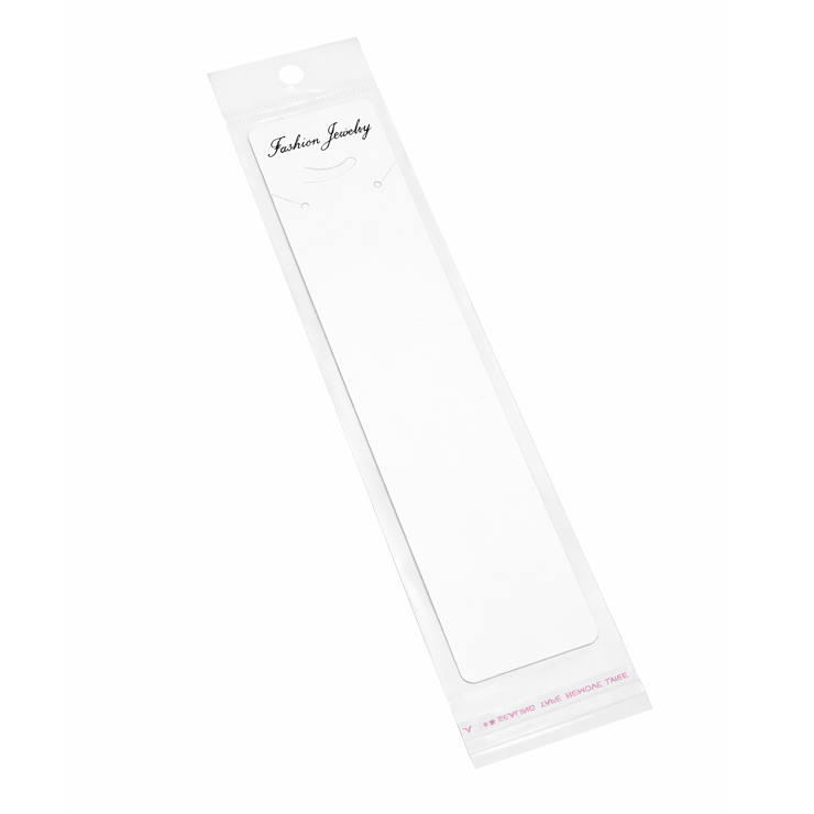 Praktická bílá bižuterní karta včetně ochranného celofánového sáčku je ideální pro balení náhrdelníků, delších šperků nebo sad (náhrdelník + náušnice).