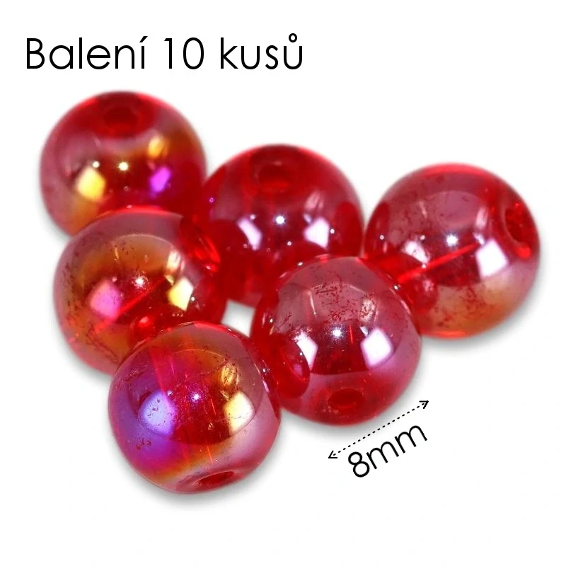 Červené kuličky, AB, 8mm (10ks)skladem 98 balení6 Kč/ balení