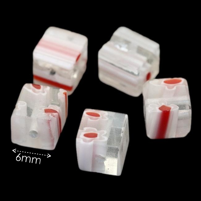 Skleněná kostka millefiori s květy. Každá kostka je trošku jiná, nejsou úplně pravidelné.