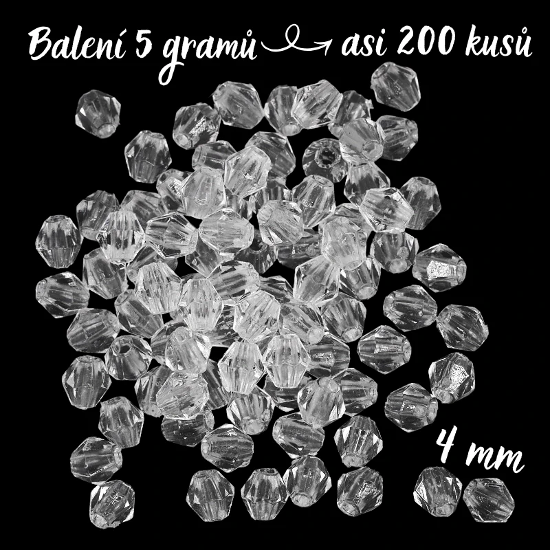 Jemné akrylové (plastové) korálky v čirém provedení dodají šperkům čistý, elegantní a luxusně jiskřivý vzhled.