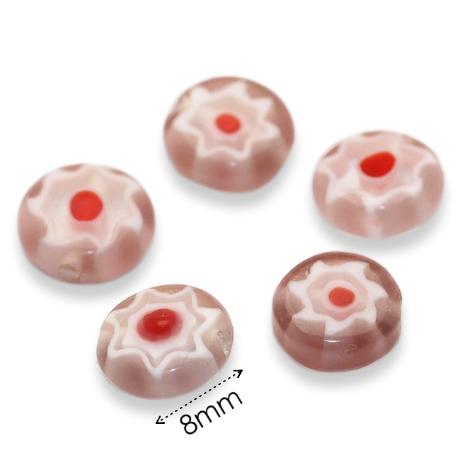 Skleněná placička millefiori s květy. Každá placička je trošku jiná, nejsou úplně pravidelné a stejně velké.