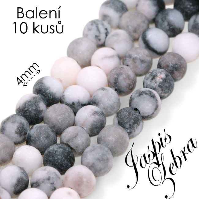 - JASPIS zebrovaný, matná kulička, 4mm (10ks)