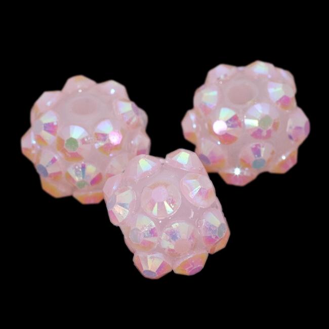 Růžová kulička z pryskyřice s třpytivými kamínky.