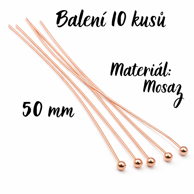 Růžové zlato, nýt s kuličkou, 50mm (10ks)skladem 47 balení25 Kč/ balení