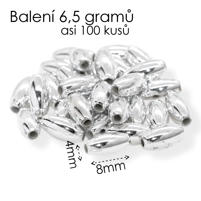 Stříbrná rýže, 8x4mm (6,5g=100ks)
